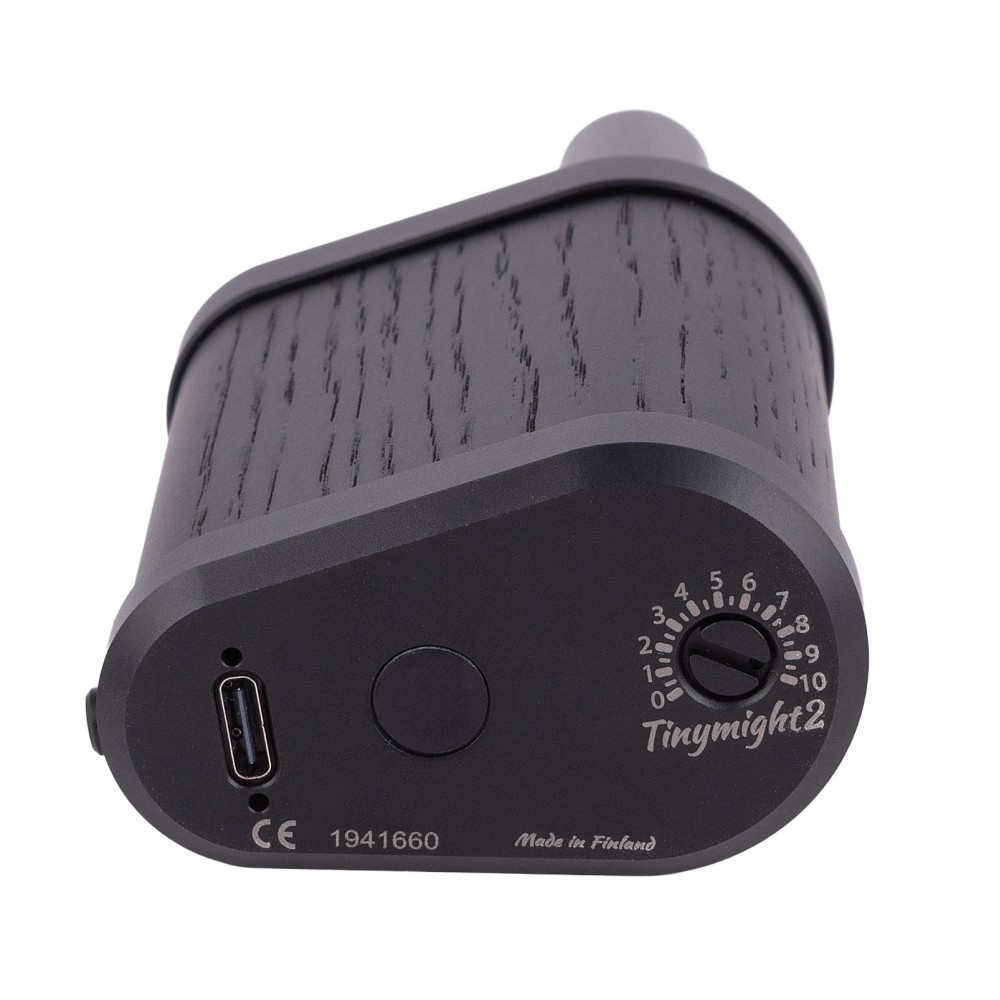 The wooden body made of solid oak in black color on the external surfaces. The wood uses exact same surface treatment as all Tinymight 2 units.